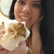 A very pretty brunette girl with exotic features and a mid-western, American accent takes a shit and a piss while sitting on a toilet, wipes her ass, and shows us the dirty TP. Interesting monologue, too. About 8 minutes.